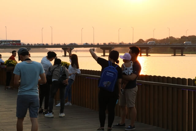 Được chính thức đưa vào sử dụng từ ngày 15/1 cây cầu đi bộ có sàn được lát bằng gỗ lim nằm trên sông Hương đang là một điểm đến hấp dẫn cho người dân và du khách.